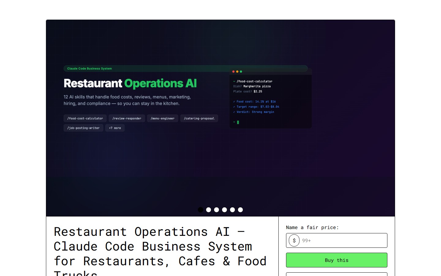 Who should buy this: Any restaurant, cafe, or food truck doing $20K+/month in revenue. The menu optimization pays for itself in the first week.