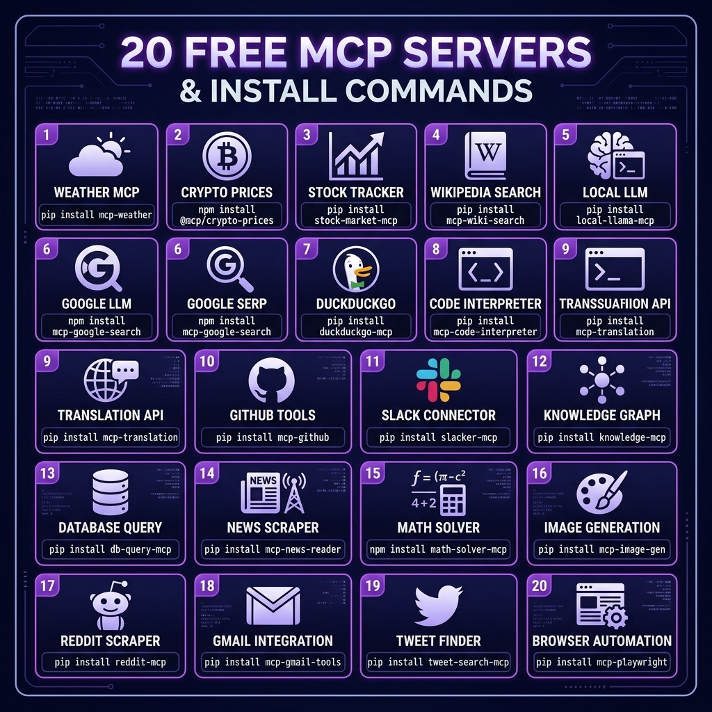 20 free MCP servers you can install in 60 seconds. One-line install commands, what each server does, and why it belongs in your Claude Code setup. All open source.