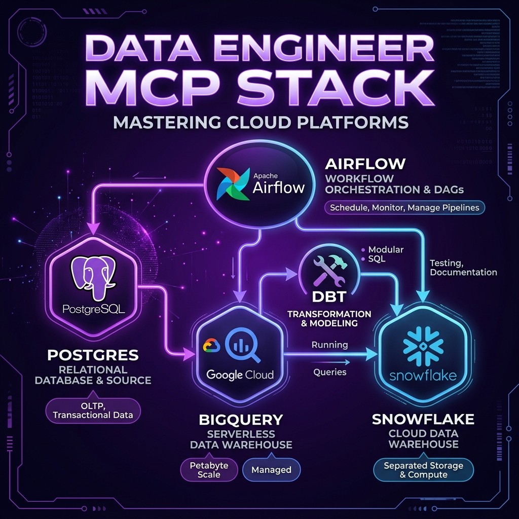 Postgres MCP โ BigQuery MCP โ dbt MCP โ Airflow MCP