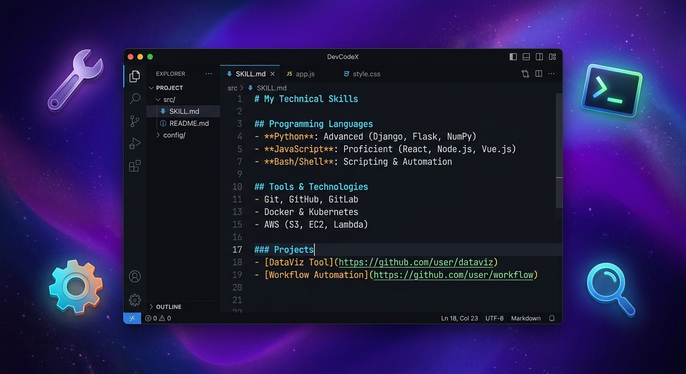 Every Claude Skill is a Markdown file named SKILL.md (or a custom name with the .md extension placed in the .claude/skills/ directory). The file uses a specific structure that Claude Code parses to understand what the skill does, when to activate it, and what tools it can use.